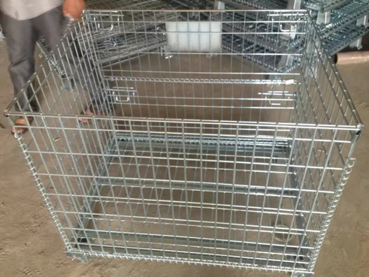 倉儲籠的主要原材料是高線拉成的強力鋼絲,一般絲徑是 5mm, 6mm, 6.4mm。網片焊接的網目間距一般為50×100,100×100,50×50。倉儲籠底部采用U型鋼焊接而成,U型鋼是冷軋帶鋼軋機軋制而成,底部四角采用沖壓件一次沖制而成。